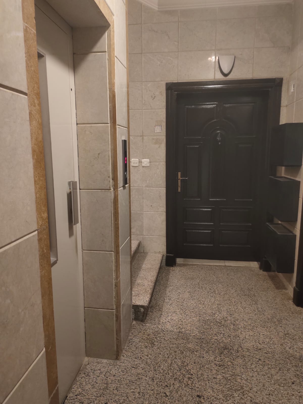 الحد الجنوبي: مصعد - والدرجين والمنورين ثم الشقه رقم 3 (ثلاثه) من الجهه الجنوبيه للعماره . - يبدأ من الشرق الى الغرب بطول 4.70م (أربعة أمتار وسبعون سنتيمترا) ثم يتجه الى الشمال بطول 3.10 م ( ثلاثة أمتار وعشره سنتيمترا) ثم يتجه الى الغرب بطول 5.30 م ( خمسة أمتار وثلاثون سنتيمترا ) ثم يتجه الى الجنوب بطول 1.50 م (واحد مترا وخمسون سنتيمترا ) ثم يتجه الى الغرب بطول 2.70 م ( متران وسبعون سنتيمترا ) ثم يتجه الى الجنوب بطول 1.60 م ( واحد مترا وستون سنتيمترا) ثم يتجه الى الغرب بطول 1.60 م (واحد مترا وستون سنتيمترا ) ثم يتجه الى الشمال بطول 1.70 م ( واحد مترا وسبعون سنتيمترا ) ثم يتجه الى الغرب بطول 2.90 م ( متران وتسعون سنتيمترا ) ثم يتجه الى الجنوب بطول 1.70 م ( واحد مترا وسبعون سنتيمترا ) ثم يتجه الى الغرب بطول 6.40 م ( ستة أمتار وأربعون سنتيمترا)